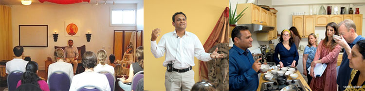 Vedika Global, Inc. is a highly appreciated organization in the United Sates, dedicated to igniting community healing and wellness movement with classical Ayurveda. The Ayurveda education mission is carried by the Vedika Gurukula, an traditional teaching school offering training programs in Ayurveda. Vaidya Abhijit is an Anchor Faculty member of Vedika Gurukula and heads the department of Panchakarma. He plays significant role in designing and upgrading the teaching curriculum of Vedika Gurukula. He also delivers public free lectures in the Bay area of California State, to propagate the wisdom of Ayurveda. Students at Vedika appreciate Vaidya Abhijit's knowledge and clarity, along with his deep respect for his own teachers and for the classical texts of Ayurveda. They see in him how such respect enables him to continue cultivating greater insights into the wisdom of Ayurveda.